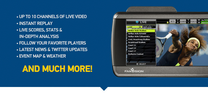 Now, the USTA is promoting Distracted Fanning. I got an e-mail today urging me to "reserve now" a device called Fanvision, which will allow me to watch up to 6 different courts from anywhere on the grounds of the Billie Jean King National Tennis Center, where the US Open begins on Monday. Live video! Instant replay! Match stats and analysis! All in a little device about the size of one of those lobster rolls that you can get at the food court for $18.